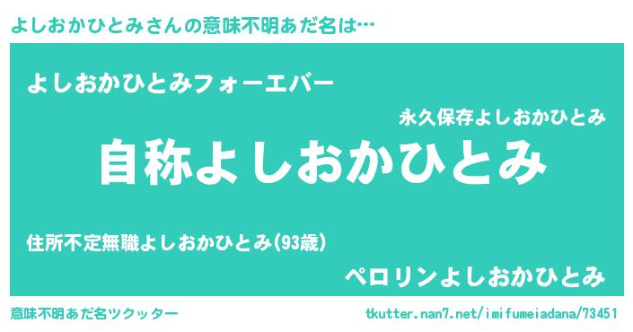 | 男性向けラノベタイトル風あだ名 | 『Re:よしおかひとみから始める異世界生活』 |