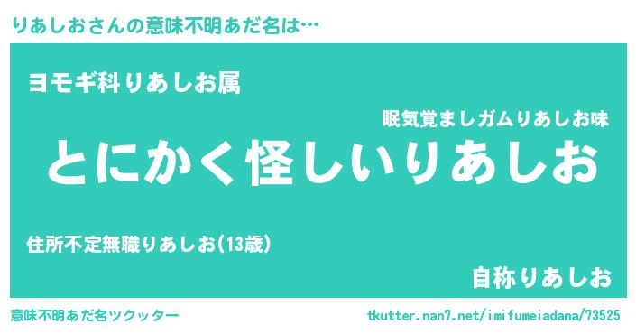 | 肩書あだ名 | 『りあしお班長』『りあしお少将』 |