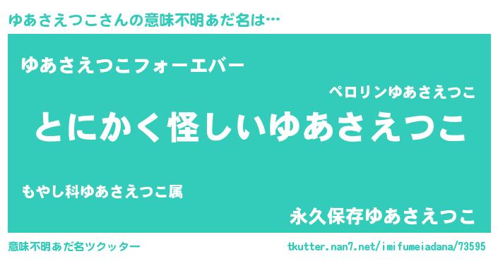| ポケモン風あだ名 | 『ヒユアサエツコ』『ユアサダネ』 |