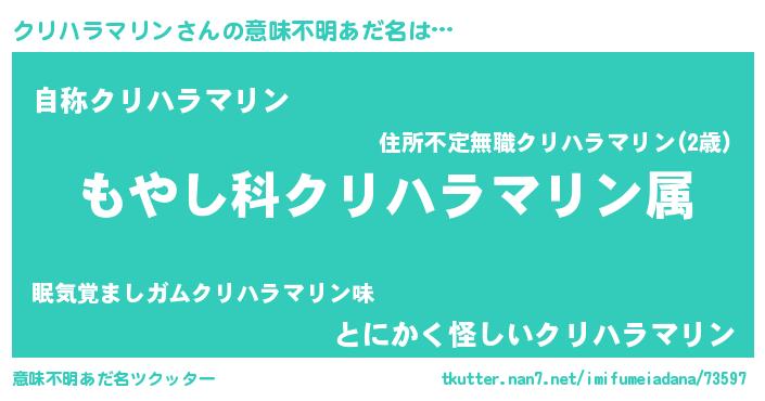 | 欧米人風あだ名 | 『トリンドルクリハラマリン』 |
