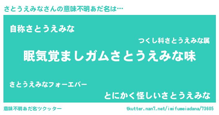 | 男性向けラノベタイトル風あだ名 | 『おまえをオタクにしてやるから、俺をさとうえみなにしてくれ! 』 |