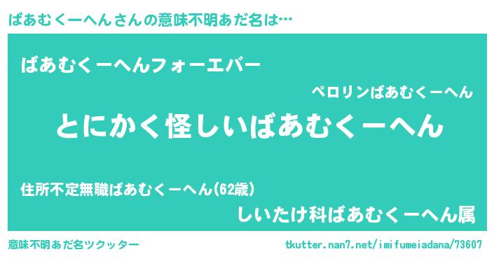 | 女子向けラノベタイトル風あだ名 | 『ばあむくーへん様がみてる』 |
