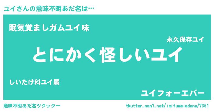 | ポケモン風あだ名 | 『ヒユイ』『ユックウザ』『ユイダネ』 |