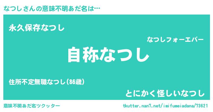 | 欧米人風あだ名 | 『アンジェラ・なつし』『ウサインなつし』 |