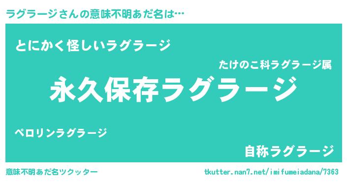 | ヘコむあだ名 | 『ラグラージ(遠い目)』『ラグぷりん』 |