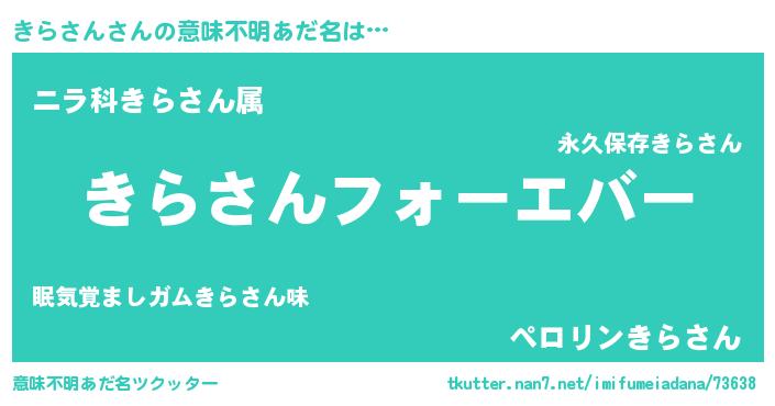 | 肩書あだ名 | 『きらさん総理大臣』『きらさん少佐』 |