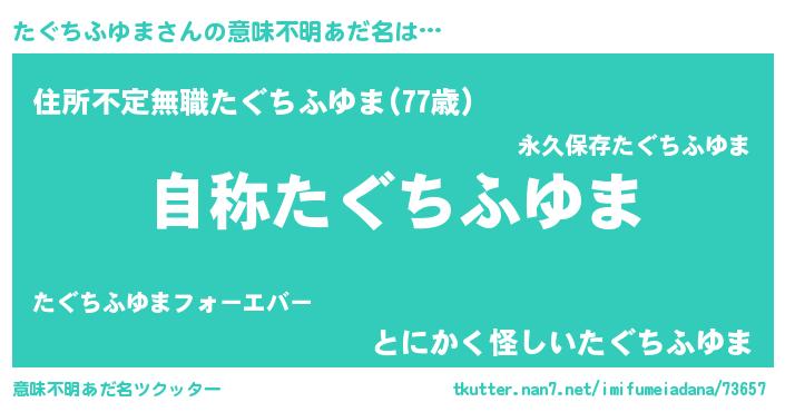| ヘコむあだ名 | 『たぐ太郎』『たぐちふゆま(苦笑)』 |