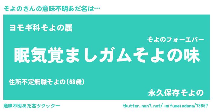 | 欧米人風あだ名 | 『アンジェラ・そよの』『ダニエルそよの』 |
