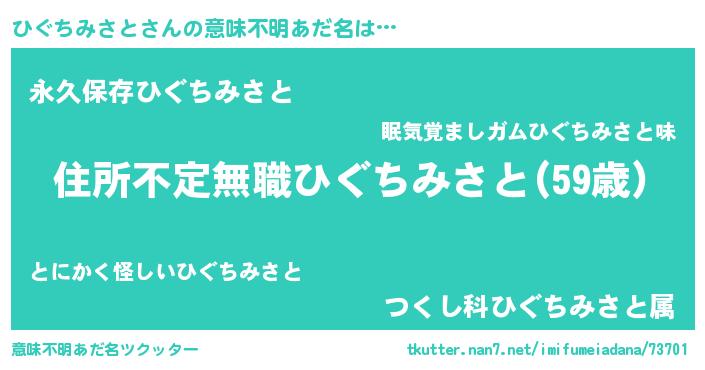 | 胡散臭い通販商品みたいなあだ名 | 『あなたにだけ特別に提供する限定10本のレアな日本酒…その名も「ひぐちみさと」』 |