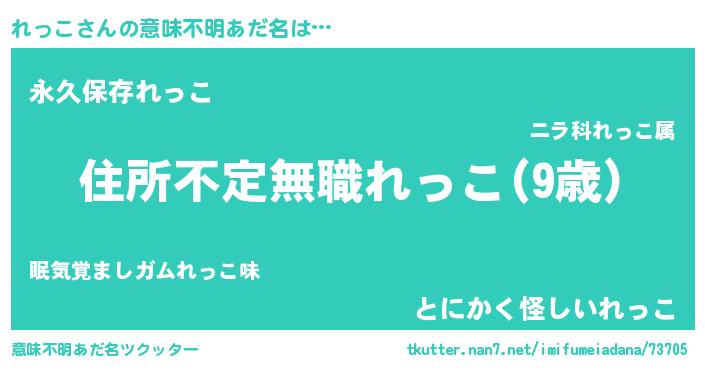 | 男性向けラノベタイトル風あだ名 | 『この素晴らしい世界にれっこを!』 |