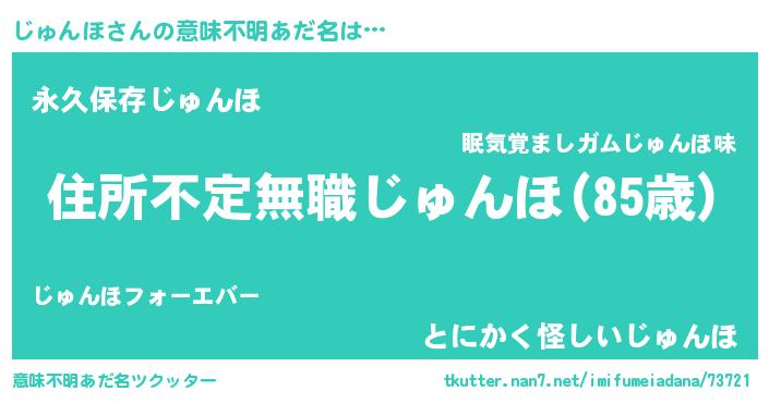 | 男性向けラノベタイトル風あだ名 | 『じゅんほに滅ぼされるだけの簡単なお仕事です』 |