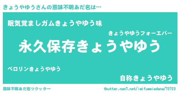 | ヘコむあだ名 | 『きょうやゆう(苦笑)』『酢こんぶ』 |