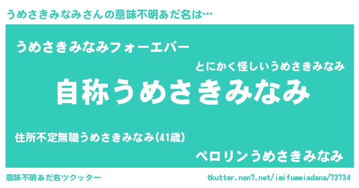 | 男性向けラノベタイトル風あだ名 | 『魔法科高校のうめさきみなみ』 |
