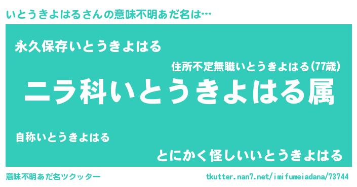 | 胡散臭い通販商品みたいなあだ名 | 『前代未聞の健康食品…その名も「いとうきよはる」』 |