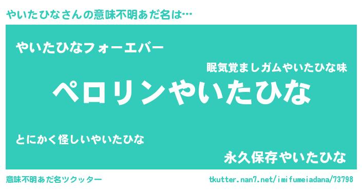 | 男性向けラノベタイトル風あだ名 | 『やいたひなに滅ぼされるだけの簡単なお仕事です』 |