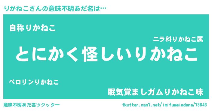 | 胡散臭い通販商品みたいなあだ名 | 『信頼と実績のサプリメント…その名も「りかねこ」』 |