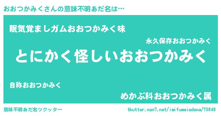| 男性向けラノベタイトル風あだ名 | 『おおつかみくの嫁は女の子じゃないと思った?』 |