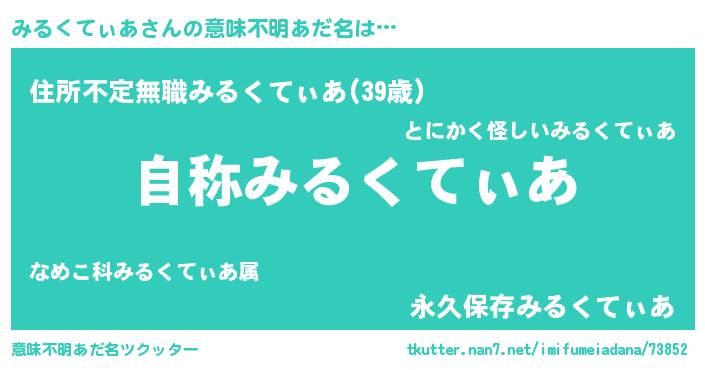 | 男性向けラノベタイトル風あだ名 | 『魔法科高校のみるくてぃあ』 |