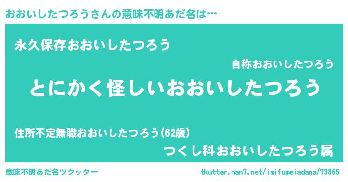| 女子向けラノベタイトル風あだ名 | 『おおいしたつろうは平凡を望む』 |