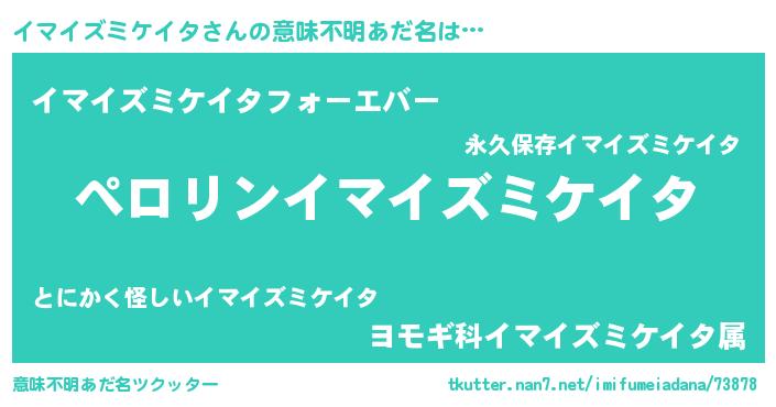 | 男性向けラノベタイトル風あだ名 | 『イマイズミケイタの憂鬱』 |
