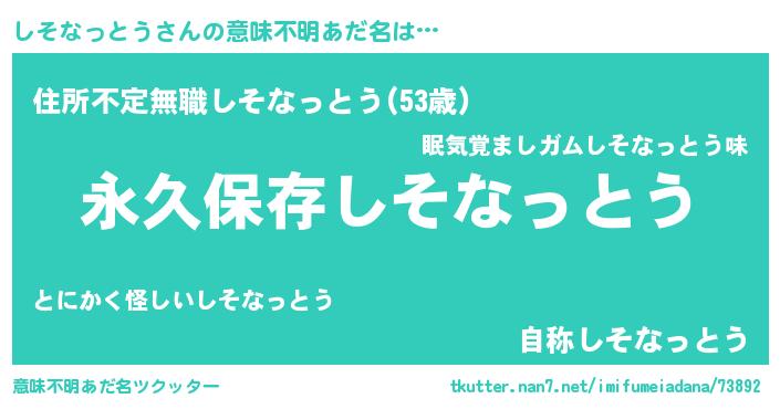 | 欧米人風あだ名 | 『アンジェラ・しそなっとう』 |