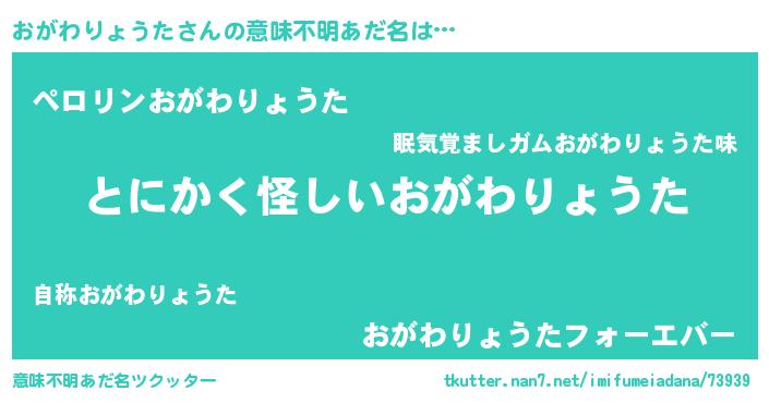 | 料理風あだ名 | 『おがわりょうたの豆乳スープ』 |