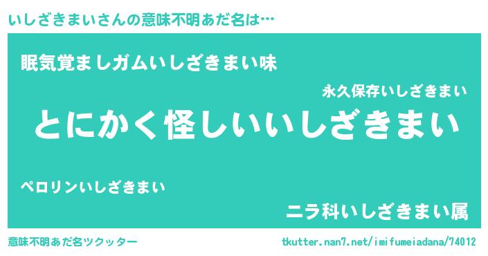 | ヘコむあだ名 | 『いしお』『いしざきまい(笑)』 |