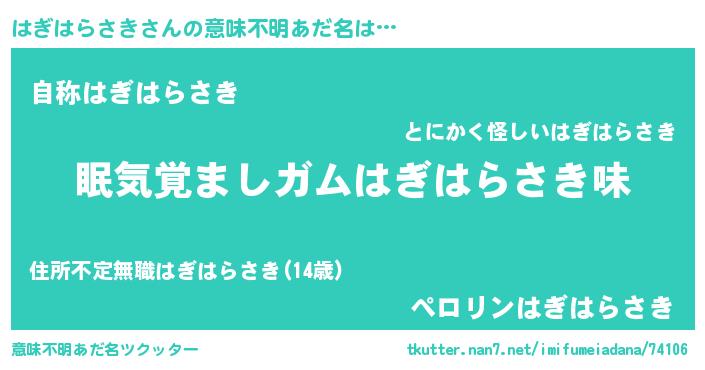 | 料理風あだ名 | 『はぎはらさきのトマト煮』 |