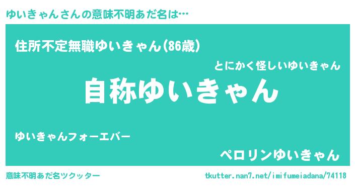| 男性向けラノベタイトル風あだ名 | 『Re:ゆいきゃんから始める異世界生活』 |