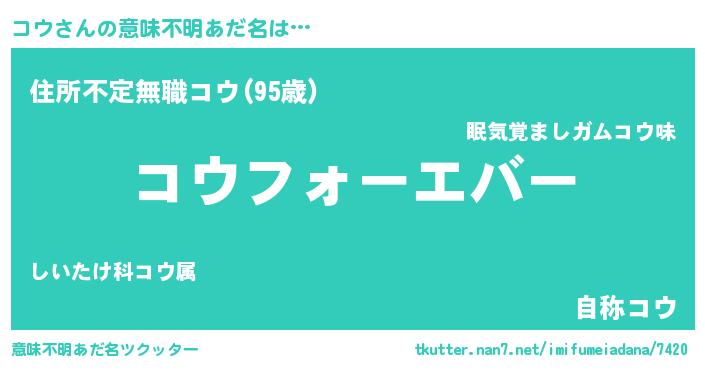 | 女子向けラノベタイトル風あだ名 | 『コウの雑貨屋さん』 |