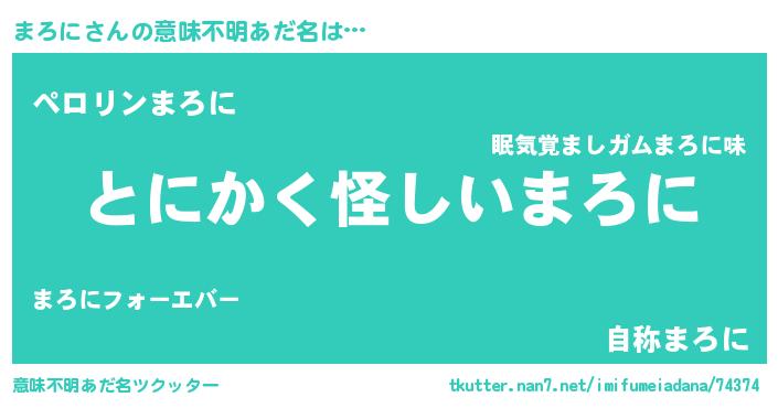 | 男性向けラノベタイトル風あだ名 | 『まろにの嫁は女の子じゃないと思った?』 |