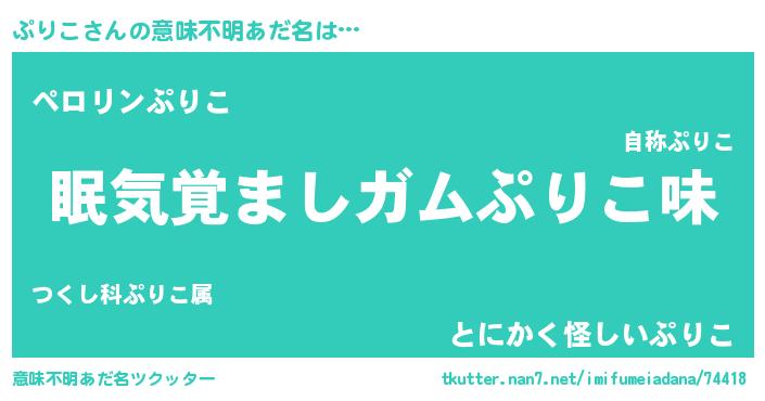 | 女子向けラノベタイトル風あだ名 | 『死神ぷりこの再婚』『闇のぷりこ』 |