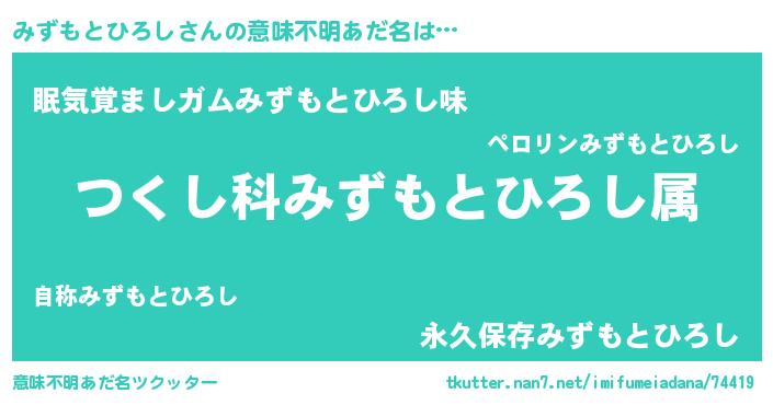 | ヘコむあだ名 | 『みずもとひろし(笑)』『みずにー』 |