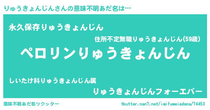 | 男性向けラノベタイトル風あだ名 | 『りゅうきょんじんの憂鬱』 |