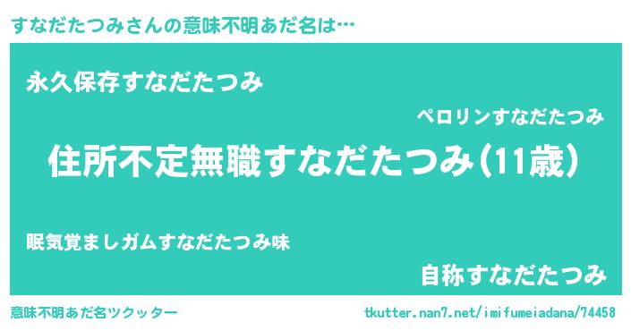 | 胡散臭い通販商品みたいなあだ名 | 『あなたにだけ特別に提供する100年もののヴィンテージワイン…その名も「すなだたつみ」』 |
