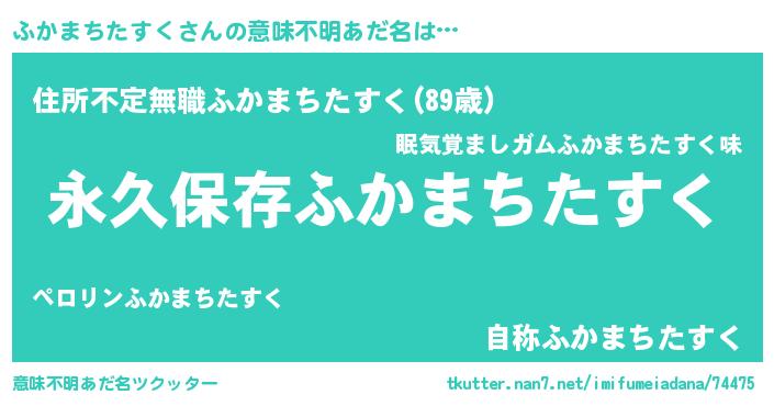 | ヘコむあだ名 | 『ふかまちたすく(震え声)』『ふかっふぃ~』 |