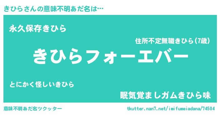 | ファンタジー風あだ名 | 『エターナルキヒラー』『キヒディッシュ』 |