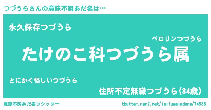 | 男性向けラノベタイトル風あだ名 | 『転生したらつづうらだった件』 |