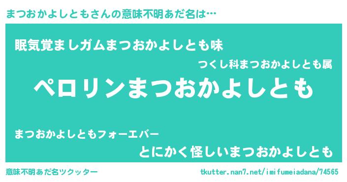 | 男性向けラノベタイトル風あだ名 | 『まつおかよしともに滅ぼされるだけの簡単なお仕事です』 |