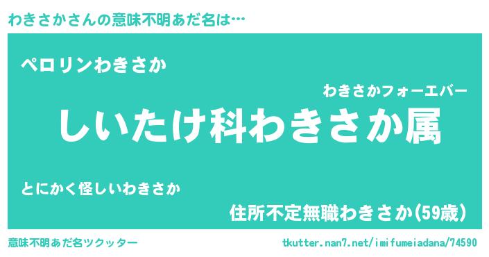 | 男性向けラノベタイトル風あだ名 | 『ワキサカスレイヤー』『わきさかの憂鬱』 |