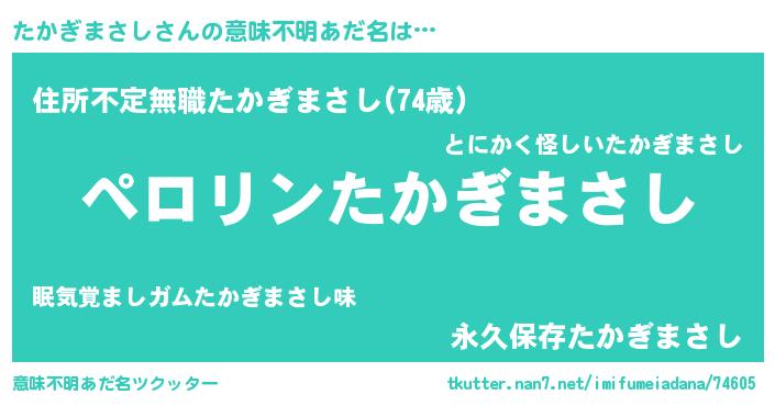 | 男性向けラノベタイトル風あだ名 | 『たかぎまさしの憂鬱』 |