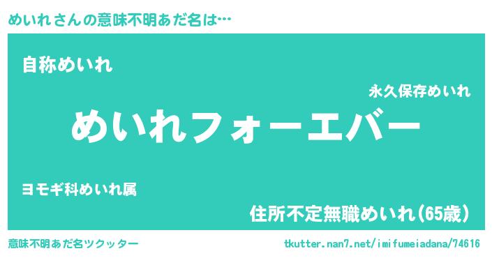 | ファンタジー風あだ名 | 『エターナルメイレー』『ゼメイトゥ』 |