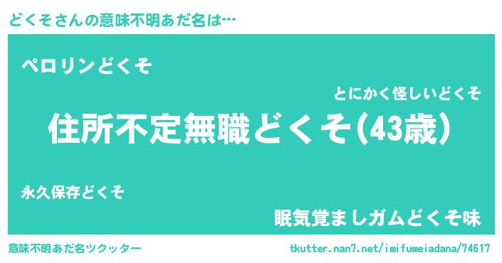| 男性向けラノベタイトル風あだ名 | 『この素晴らしい世界にどくそを!』 |