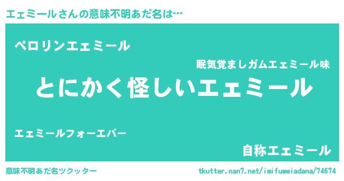 | ポケモン風あだ名 | 『ヒエェミール』『エェゴンZ』 |