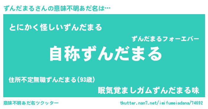 | 男性向けラノベタイトル風あだ名 | 『Re:ずんだまるから始める異世界生活』 |