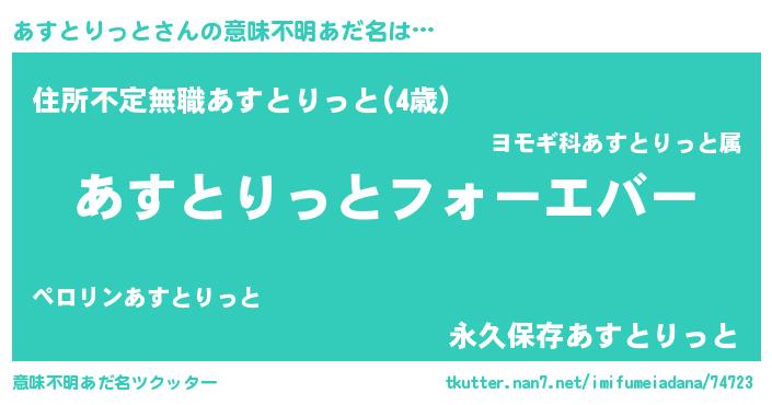 | 女子向けラノベタイトル風あだ名 | 『あすとりっとの婚約者』 |