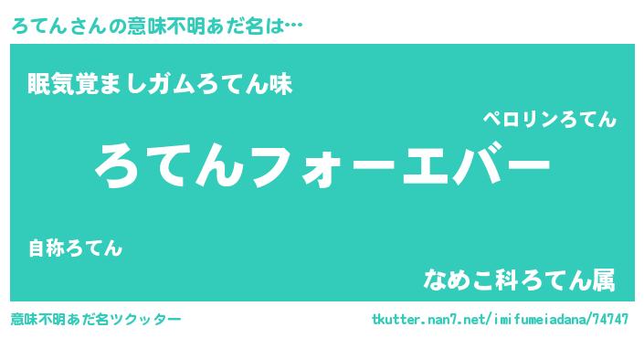 | 女子向けラノベタイトル風あだ名 | 『ろてんの婚約者』『ろてん恋絵巻』 |
