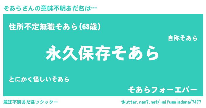 | ヘコむあだ名 | 『そあら(爆)』『レバニラ』『そあを』 |