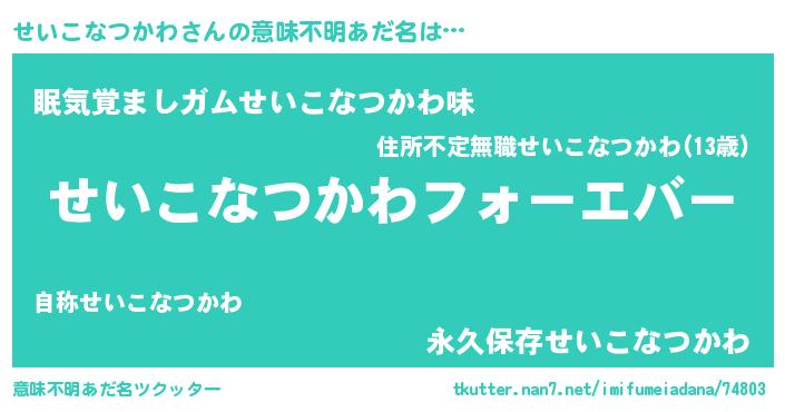 | 胡散臭い通販商品みたいなあだ名 | 『世界が平和になる高級そうな絵画…その名も「せいこなつかわ」』 |