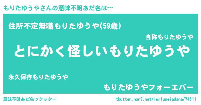 | 胡散臭い通販商品みたいなあだ名 | 『信頼と実績のサプリメント…その名も「もりたゆうや」』 |